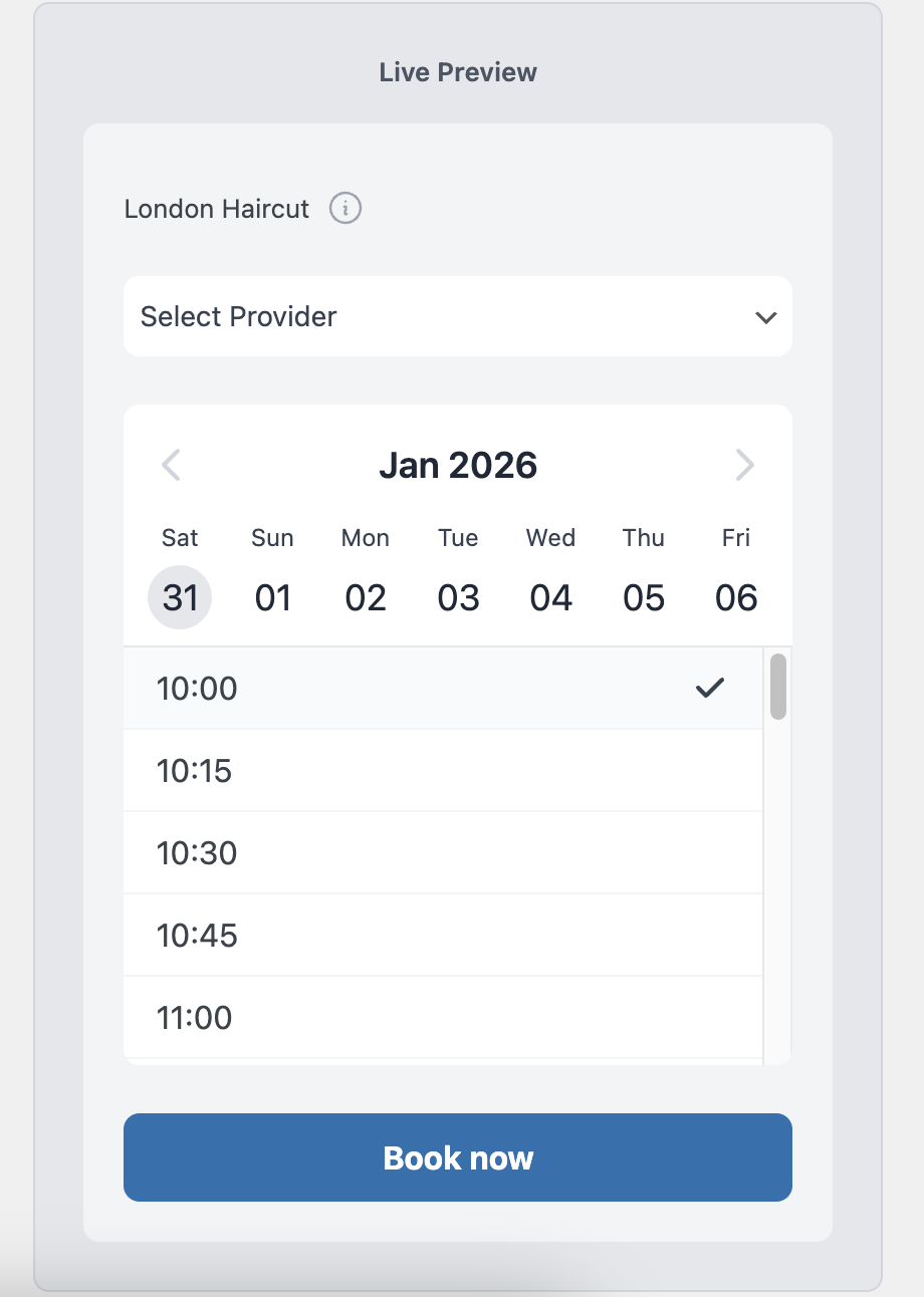 - Setup Your Services – Create appointment types (e.g., “Haircut – 30 minutes”)