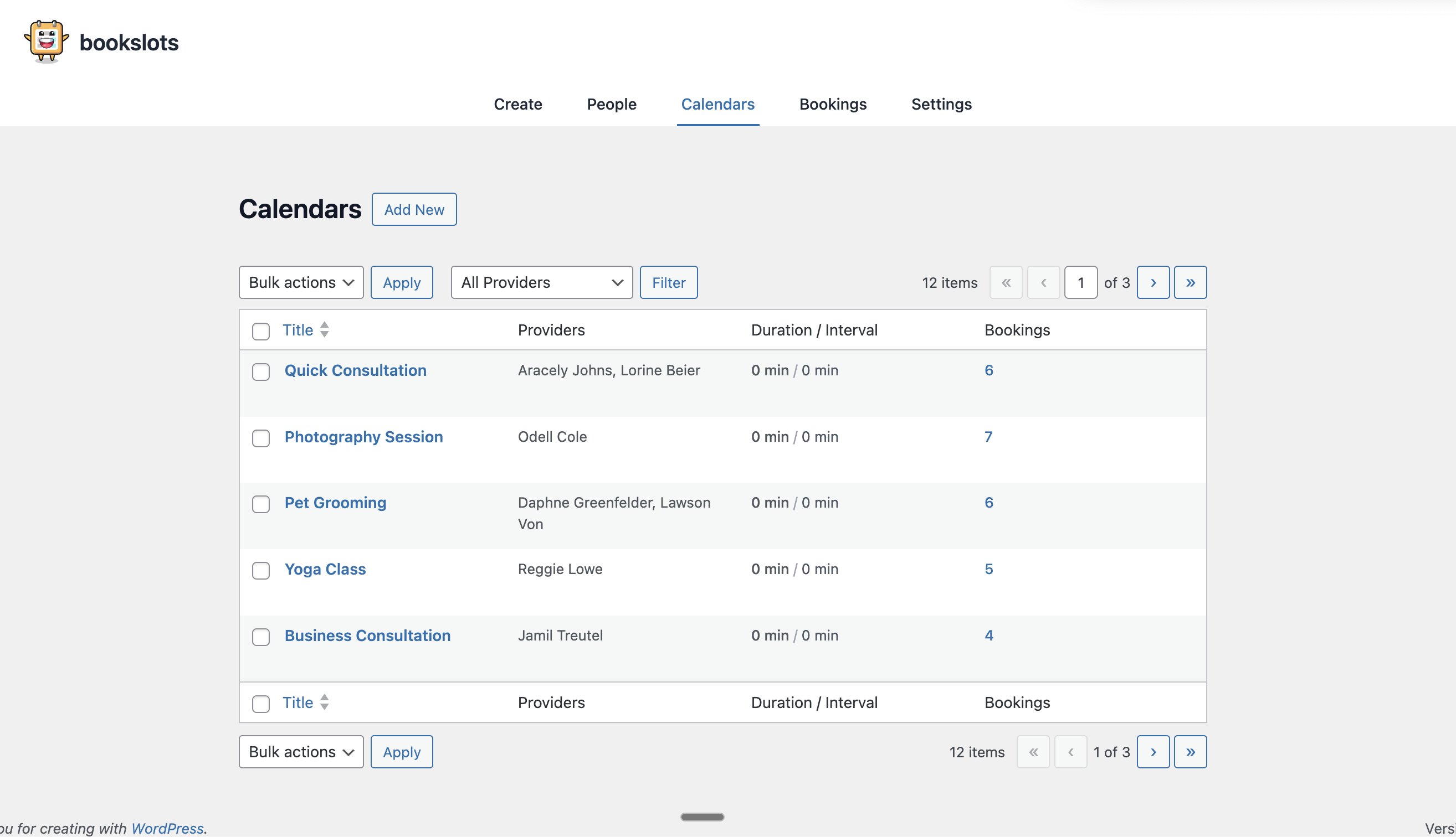 Calendars Overview – See all your services with providers and booking counts