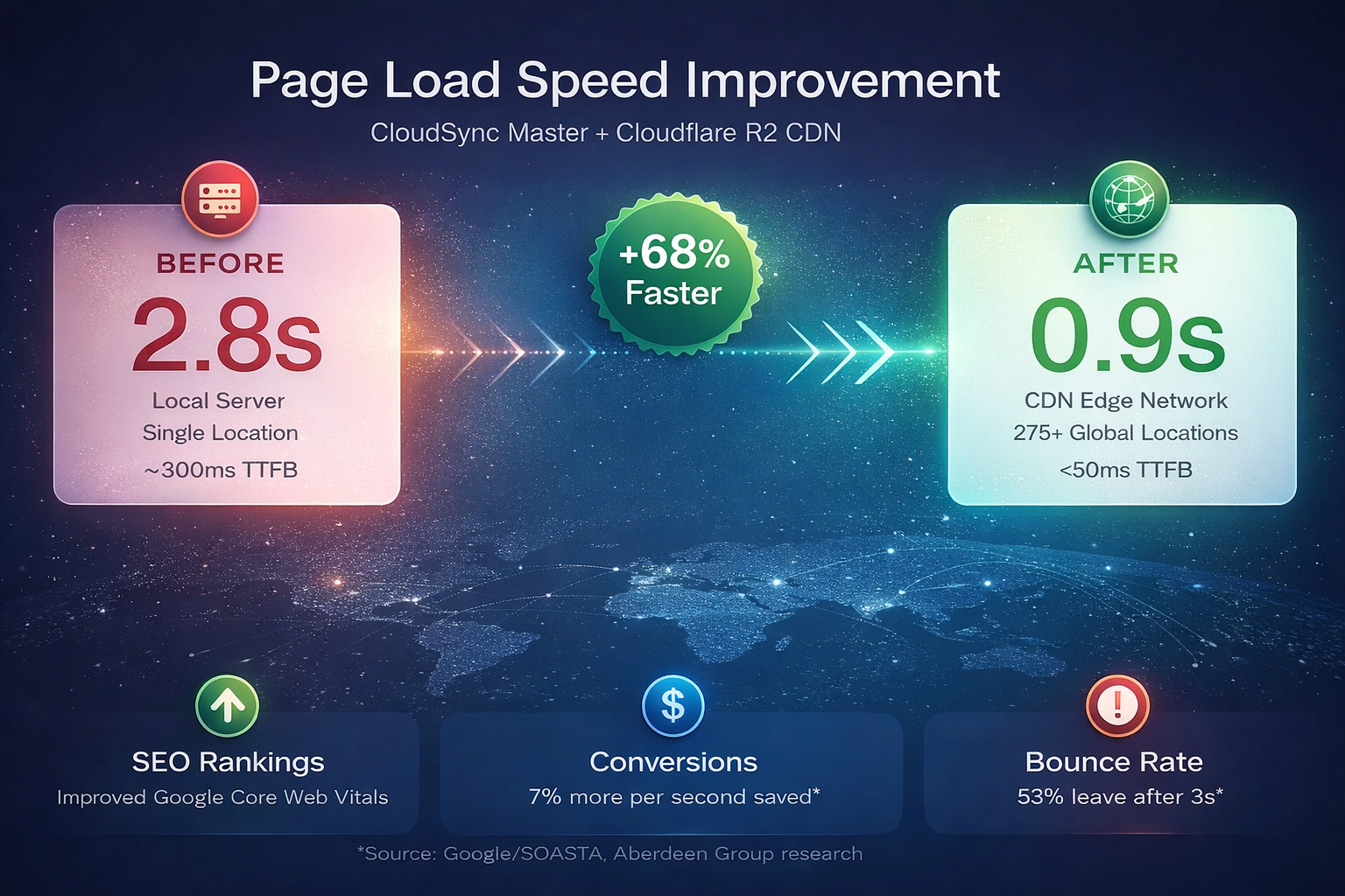 CloudSync Master offloads your WordPress media to cloud storage and serves it via global CDN – delivering lightning-fast page loads that keep visitors engaged and improve your Google rankings.